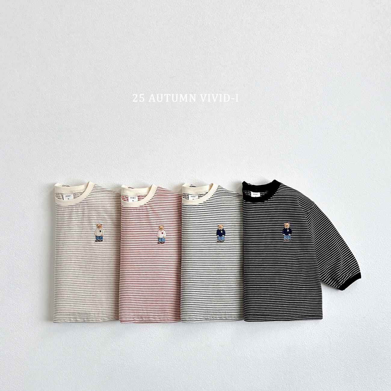 [送料無料]【VIVID I】bear embroidery stripes tee