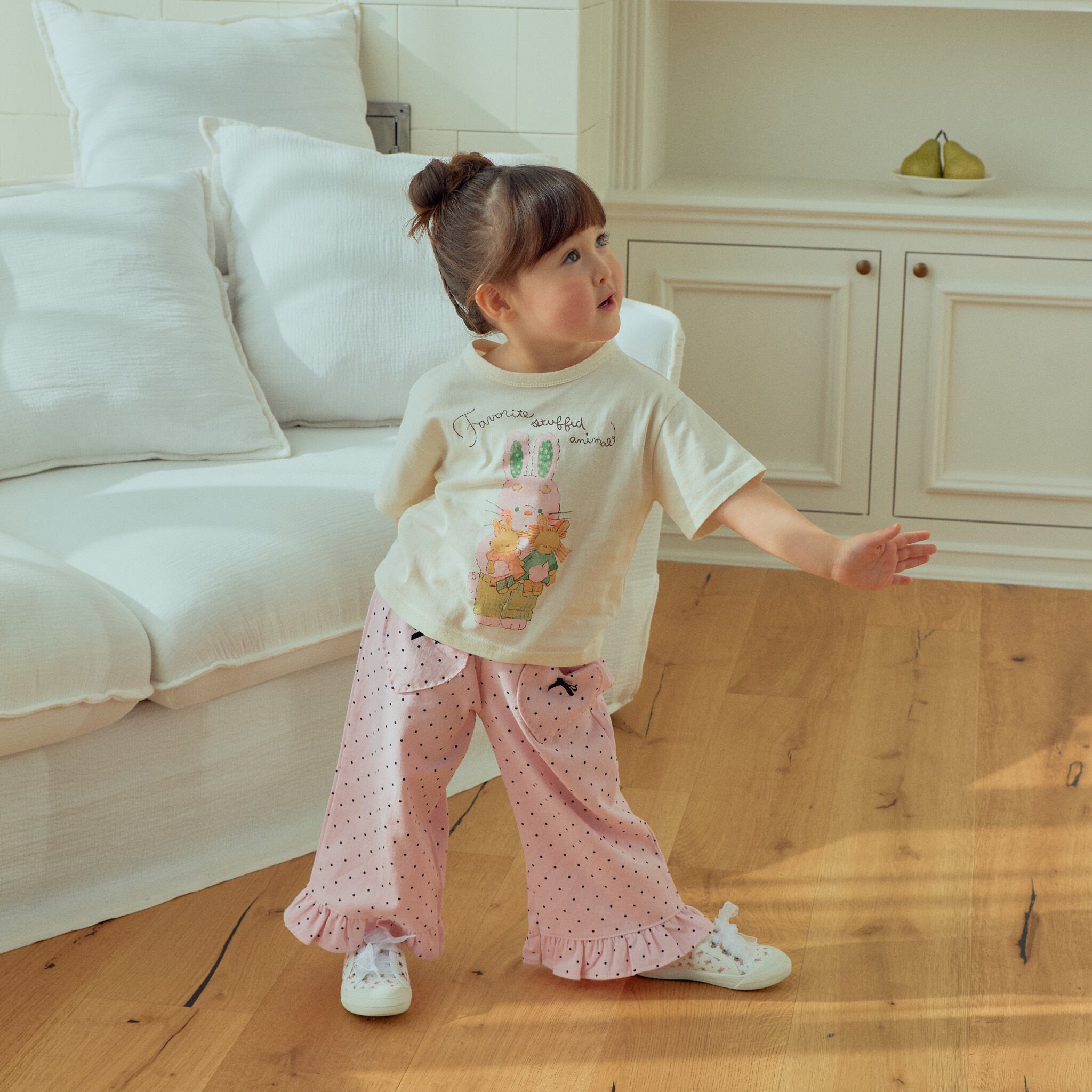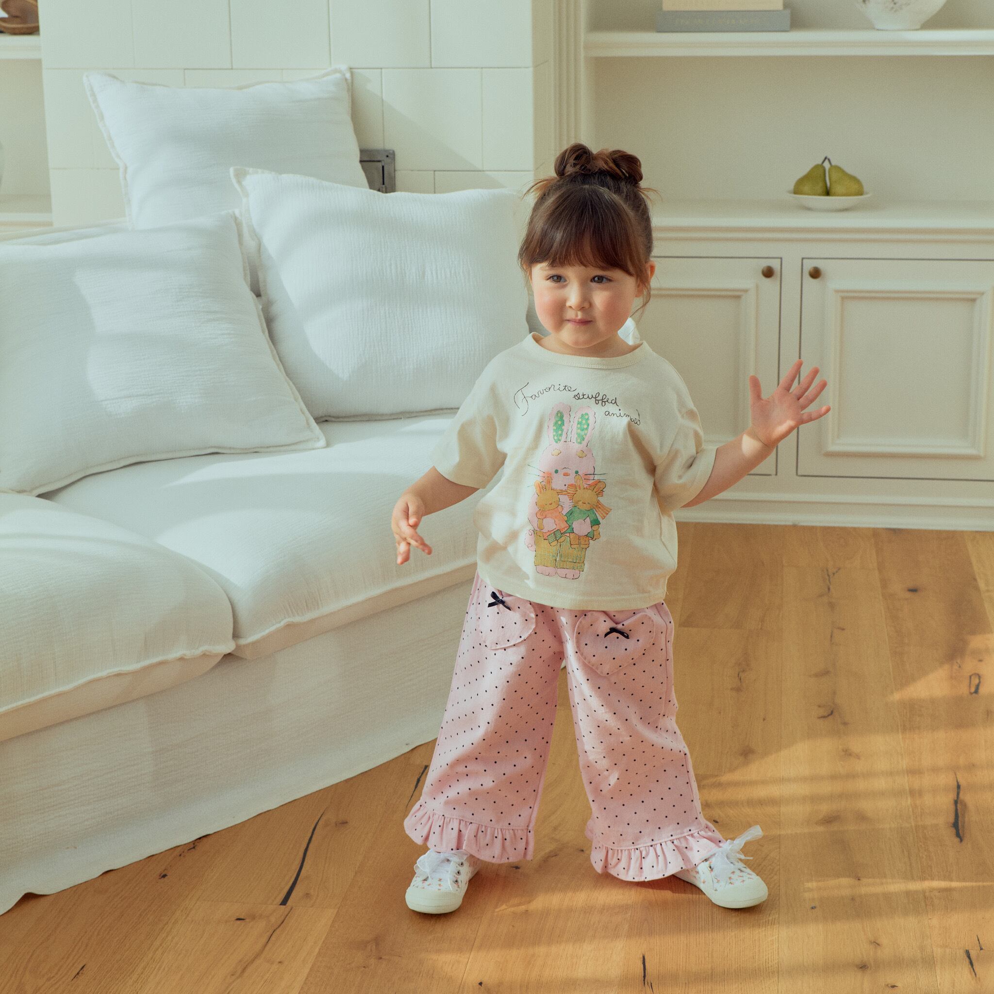 [送料無料]【1stblue】rabbit printed half sleeves tee