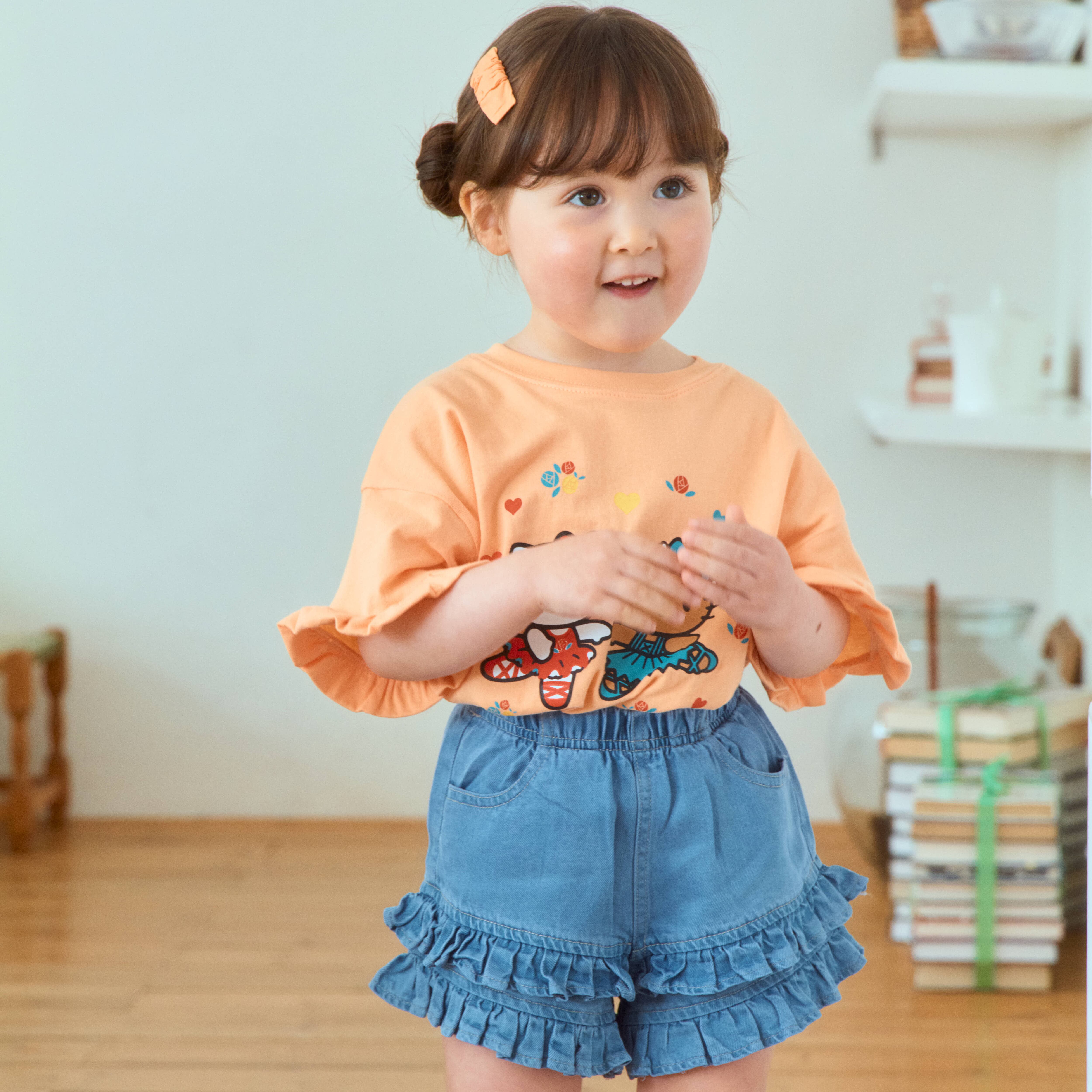 [送料無料]【1stblue】cancan frill denim half pants