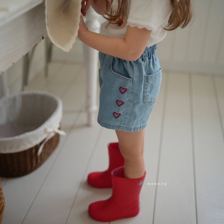[送料無料]【neneru】heart denim half pants