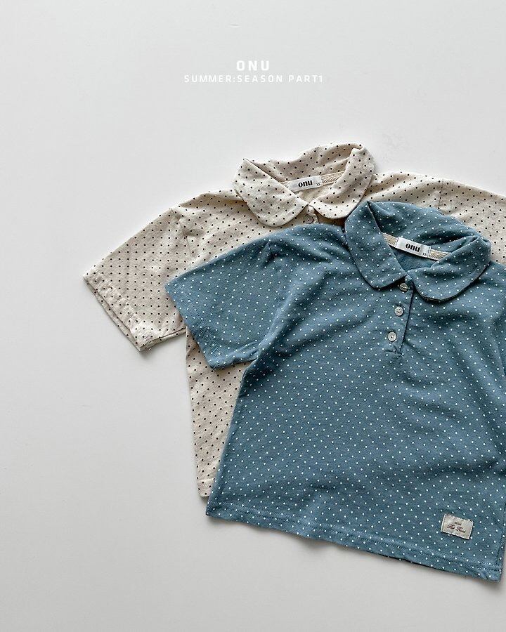 [送料無料]【onu】dot collar half sleeves tee