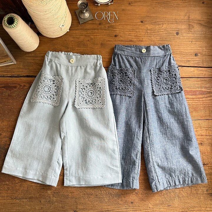 [送料無料]【OREN】mare lace linen denim pants