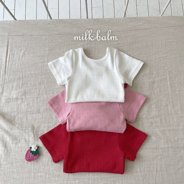 [送料無料]【milkbalm】eyelet X half sleeves tee