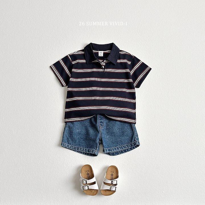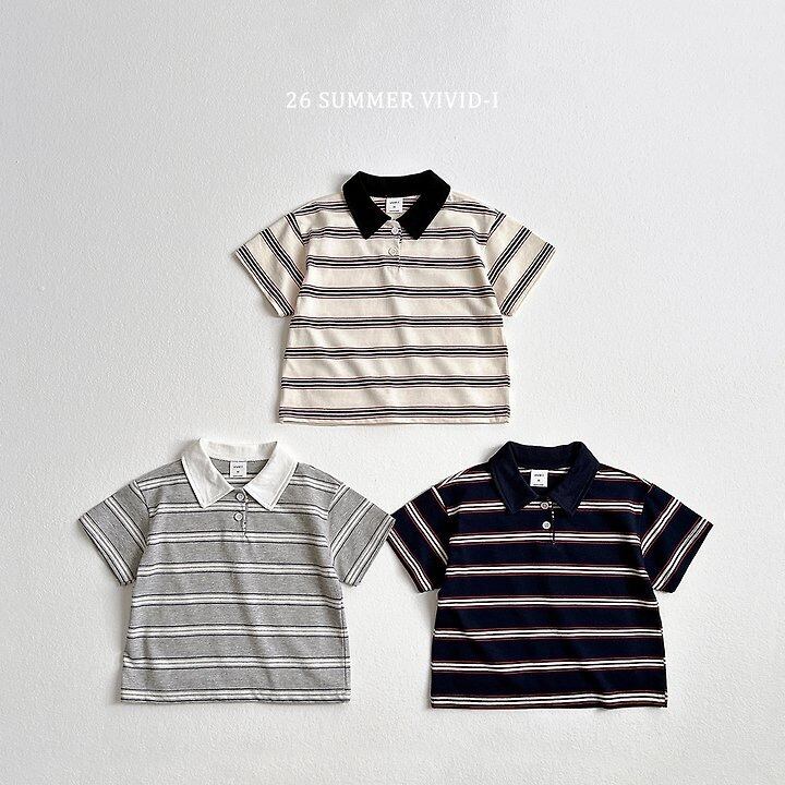 [送料無料]【VIVID I】multi stripe collar half sleeves