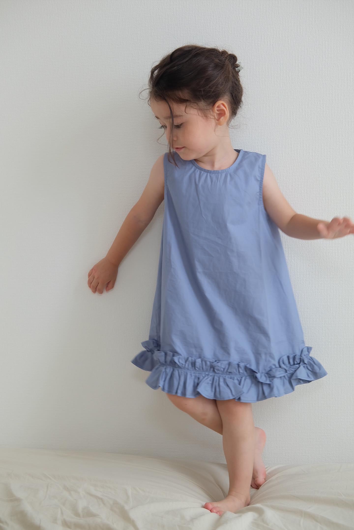 【即納】スカイブルーのフリルトリムワンピース